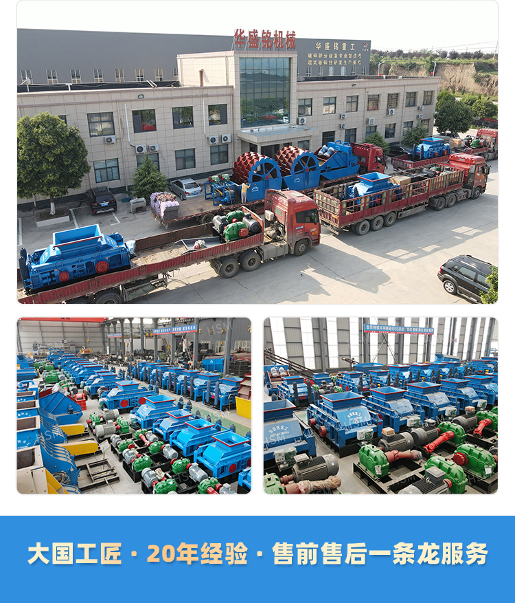 石頭制砂機也叫石子制砂機也叫雙輥制砂機,雙輥破碎機,對輥機,對滾破碎機,是利用兩臺電機帶動兩副輥軸對物料進行擠壓,研磨的工作,破碎出的物料有較一般破碎機械更優(yōu)異的效果,能夠?qū)箟簭姸刃∮?60兆帕的各種石料進行破碎加工,具有維護成本低、用水量少、性能穩(wěn)定、功耗低、粉塵少、噪音低的特點。對于砂石骨料的需求量大增,帶動了人工制砂的發(fā)展,使用石頭制砂機進行制砂加工,可以提供不同規(guī)格大小的成品,滿足市場的需求。為什么選擇華盛銘